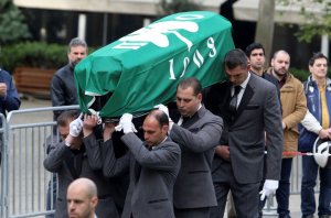 Πλήθος κόσμου στο λαϊκό προσκύνημα της σορού * Παρών και ο Ομπράντοβιτς, χειροκροτήθηκε ο Σπανούλης * Στεφάνια από παντού