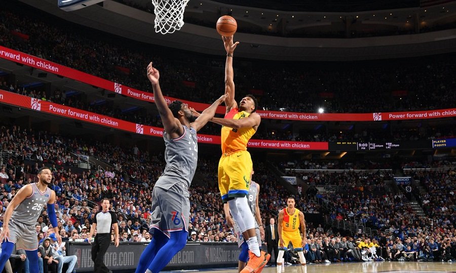 Εμπίντ 34 (13 ριμπ., 13 ασίστ), Ρέντικ 29, Σκοτ 22, Χάρις 13-Αντετοκούνμπο 45 (13 ριμπ.), Μίντλετον 22, Χιλ 20, Μπράουν 12, Γουίλσον 11.