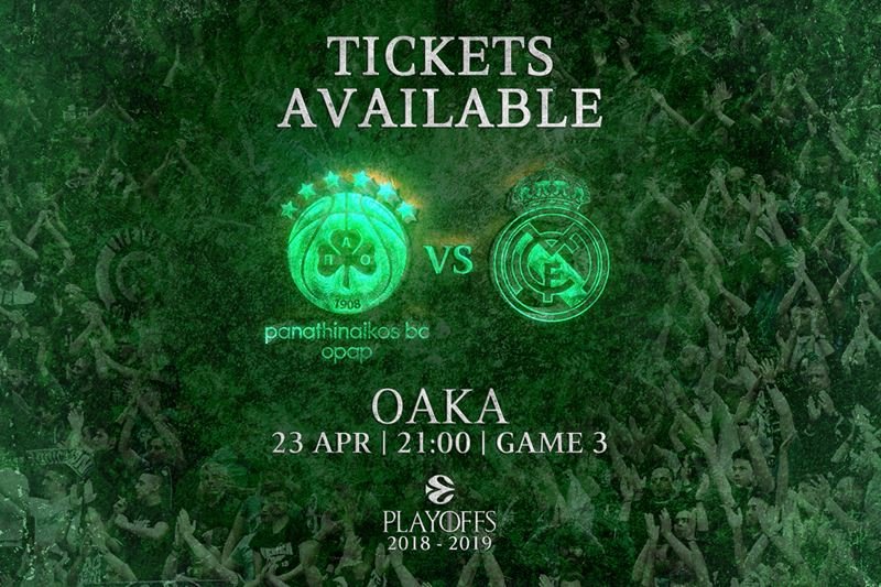 Αναλυτικά η ενημέρωση: «Η ΚΑΕ Παναθηναϊκός ΟΠΑΠ ενημερώνει τους φιλάθλους της πως ξεκίνησε από σήμερα (12/4) η διάθεση των εισιτηρίων για το Game 3 της σειράς των Playoffs της Euroleague με αντίπαλο τη Real Madrid, που θα λάβει χώρα τη Μεγάλη Τρίτη στο ΟΑΚΑ (23/4, 21.00).