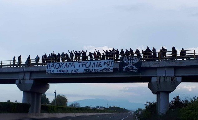 Οπαδοί της ομάδας περίμεναν το πούλμαν των «ασπρόμαυρων», λίγο μετά την Κατερίνη και έδωσαν πανηγυρικό τόνο πριν το ματς με την ΑΕΛ