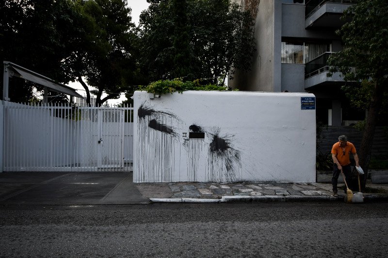 Μέλη της αναρχικής συλλογικότητας πέταξαν μπογιές στην οικεία του Τζέφρι Πάιατ * Καταδικάζει το Υπουργείο Εξωτερικών