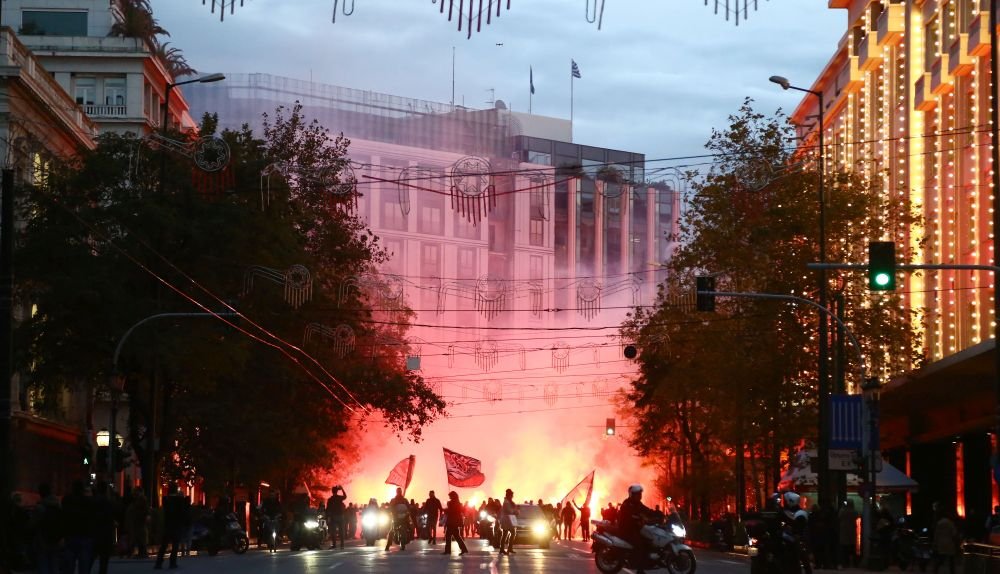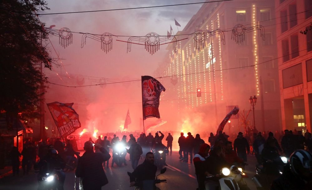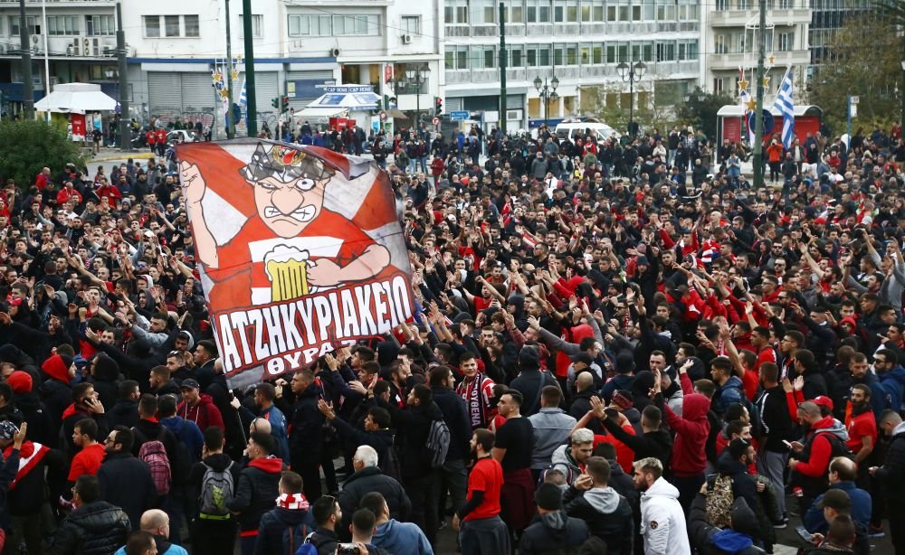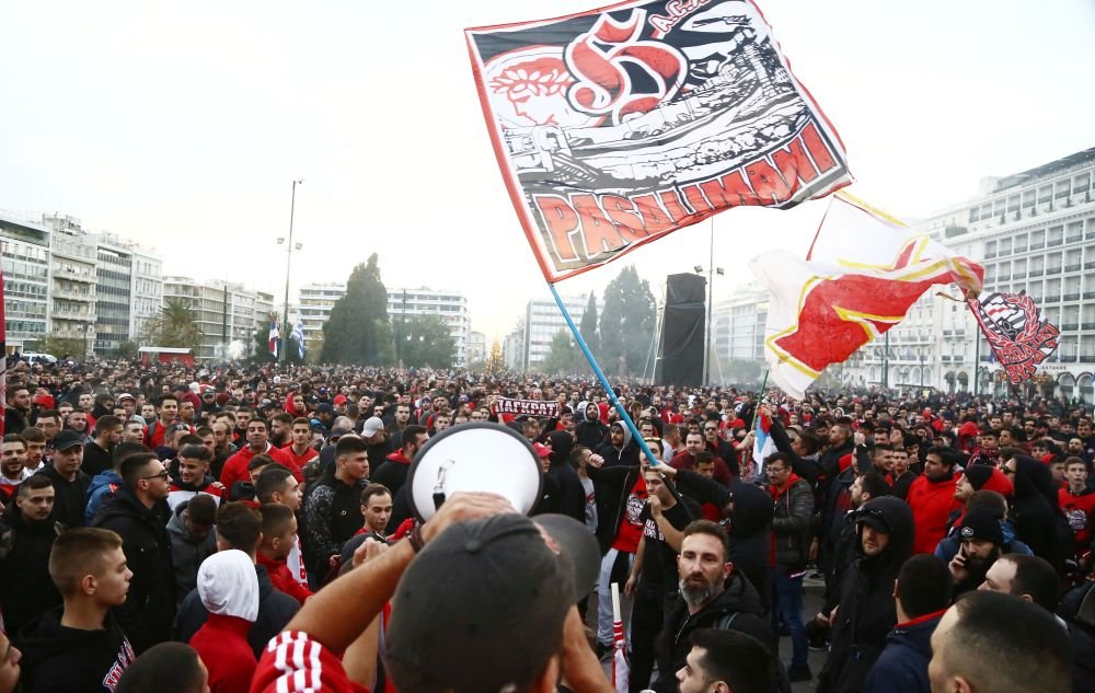 Το απόγευμα, λοιπόν, υπήρξε κοινή συγκέντρωση των οπαδών τους στην Πλατεία Συντάγματος, που... κατακοκκίνισε δίχως υπερβολή και το κλίμα ήταν πανηγυρικό.
