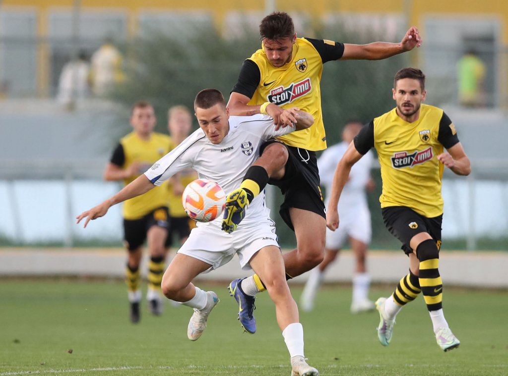 Αντιθέτως αγωνιστικά η ΑΕΚ, κινήθηκε στη μετριότητα, δεν απείλησε (ζήτημα αν έγινε ένα αξιόλογο σουτ), αλλά ευτύχησε να πετύχει το γκολ, που έκρινε το φιλικό στο 50’ σε σέντρα – σουτ του Μαχαίρα από τα αριστερά του ημικύκλιου, τη στιγμή που ο Γκατσίνοβιτς ανεπιτυχώς «χώθηκε» για να πάρει την κεφαλιά χωρίς να βρει την μπάλα, αλλά αυτή η κίνηση ήταν ικανή να μπερδέψει τον Σόρτσαν…