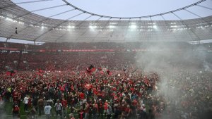 Από νωρίς στάθηκε ένα πάρτι εντός και εκτός αγωνιστικού χώρου και με το που έγινε το 5-0 στο 90', ο κόσμος άρχισε να μπαίνει μέσα! Έτσι ο αγώνας ολοκληρώθηκε και ακολούθησε ένα πρωτόγνωρο για τα δεδομένα της Λεβερκούζεν πανηγυρικό σκηνικό.
