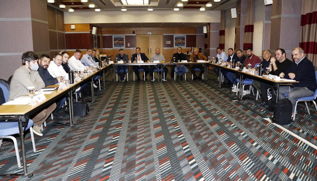 Αρχικά ο πρόεδρος της Λίγκας, Πέτρος Μαρτσούκος είπε: «Μου αρέσουν τα έργα και η σκληρή δουλειά. Η διαφάνεια σε κάθε μας βήμα είναι αδιαμφισβήτητη. Ευχαριστώ τον ΣΚΑΪ για την άψογη κάλυψη όλων των αγώνων. Ο κύριος Βρούτσης είναι ο πρώτος που βρίσκεται από την αρχή στο πλευρό μας. Τον ευχαριστούμε θερμά. Θέλω να ζητήσω να αποκαταστήσετε μια μεγάλη αδικία ως προς τη μοιρασιά των χρημάτων από το Στοίχημα. Ένα ποσοστό 17% μας το έριξαν στο 5-6%. Επί των ημερών σας κάθε χρόνο δίνετε και περισσότερα χρήματα. Να το κοιτάξετε και να πάμε στο 17%».