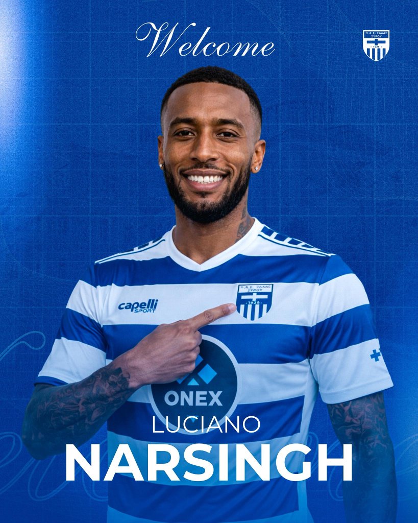 «Η ΠΑΕ Ελλάς Σύρου ανακοινώνει την απόκτηση του Λουτσιάνο Νάρσινγκ. Πρόκειται για ποδοσφαιριστή παγκοσμίου φήμης, δύο φορές πρωταθλητή Ολλανδίας με την Αϊντχόφεν, με παραστάσεις από την Premier League και το Champions League, καθώς και 19 συμμετοχές με την Εθνική Ολλανδίας. Λουτσιάνο, καλωσόρισες στη Σύρο!», αναφέρει η ανακοίνωση των Κυκλαδιτών.
