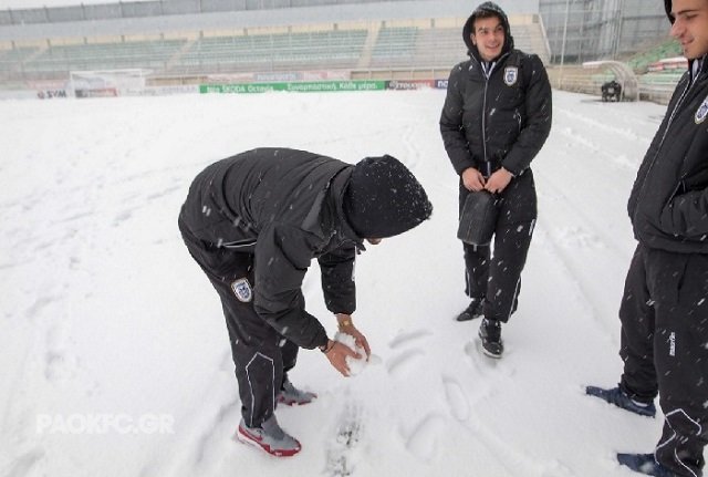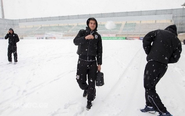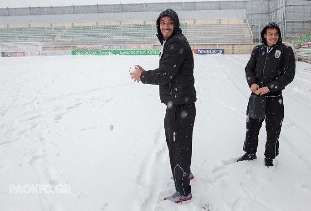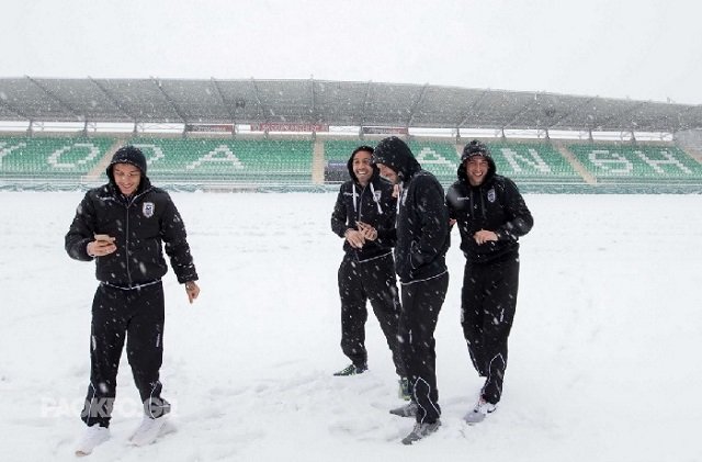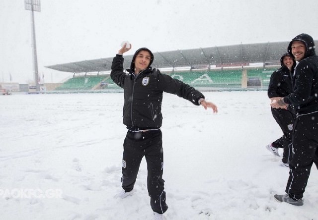 Οι παίκτες του ΠΑΟΚ βρήκαν την ευκαιρία να χαλαρώσουν και να διασκεδάσουν σαν παιδιά, εκμεταλλευόμενοι το γεγονός πως στην ακριτική πόλη είχε να χιονίσει έτσι επτά ολόκληρα χρόνια!