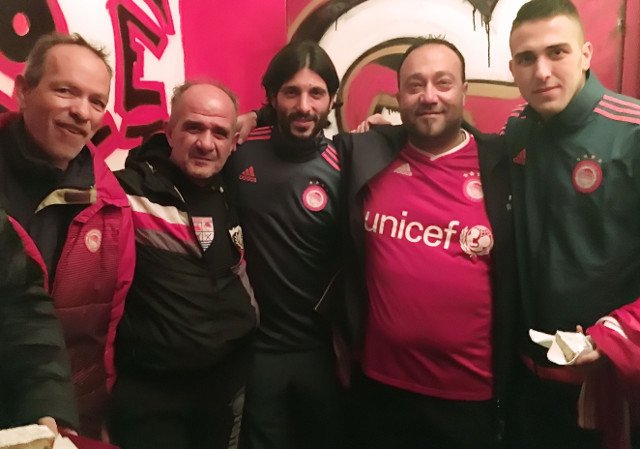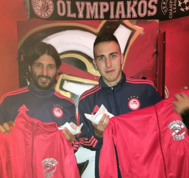 Οι δύο ποδοσφαιριστές του Ολυμπιακού έδωσαν το «παρών» στην εκδήλωση του συνδέσμου οπαδών του συλλόγου και τα είπαν σε πολύ καλό κλίμα για αρκετή ώρα με όλους τους παρευρισκόμενους. Ο κόσμος ήταν αρκετός και είχε την ευκαιρία να βγάλει φωτογραφίες με τα ινδάλματά του, ενώ τους αποθέωσε κατά την αποχώρησή τους.