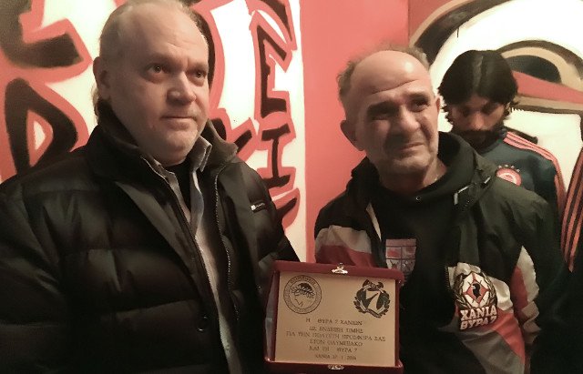 Μάλιστα, τα μέλη του κλαμπ έδωσαν στον Τσόρι και στον Φορτούνη δύο τιμητικές πλακέτες, με τον Μιχάλη Κουντούρη να τις παραλαμβάνει εκ μέρους της διοίκησης. Παράλληλα, δώρισαν στους δύο ποδοσφαιριστές και από μία φανέλα του συνδέσμου.