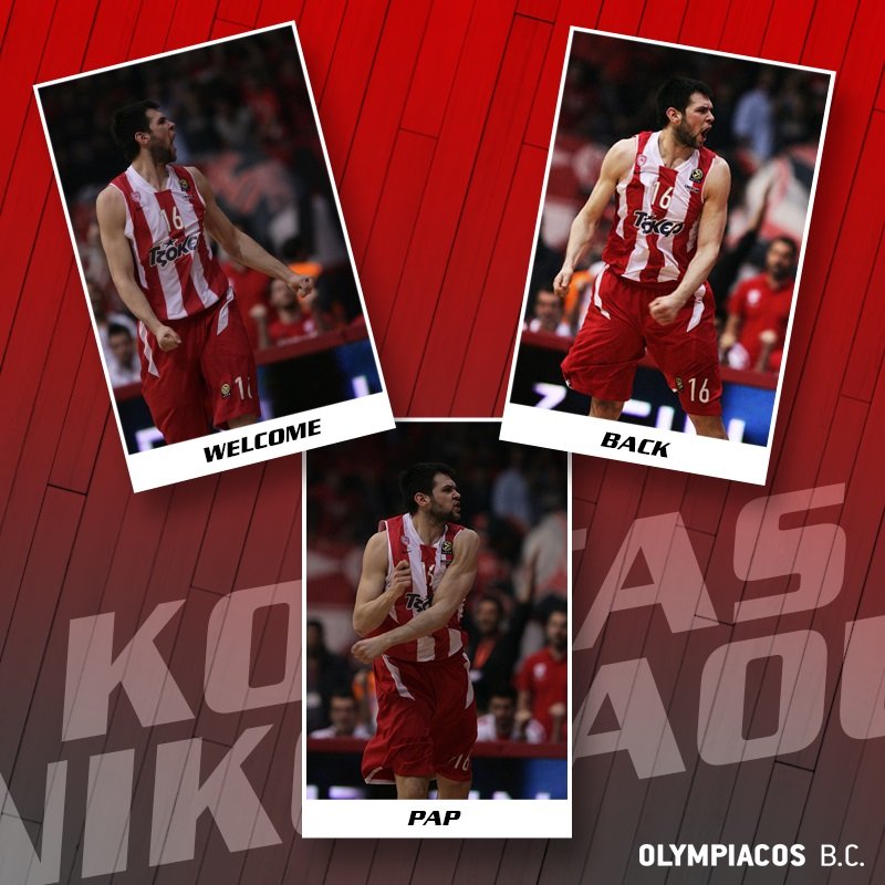 «Pap is back. H KAE Ολυμπιακός ανακοινώνει τη συμφωνία της με τον καλαθοσφαιριστή Κώστα Παπανικολάου για τα επόμενα δυόμισι χρόνια», ήταν η ανακοίνωση του Ολυμπιακού, που δημοσιεύτηκε και στα social media, ενώ την συνόδευε και μία φωτογραφία με παλαιότερες εμφανίσεις του Παπανικολάου με τη φανέλα των «ερυθρόλευκων» (Ένθετη ΦΩΤΟ).